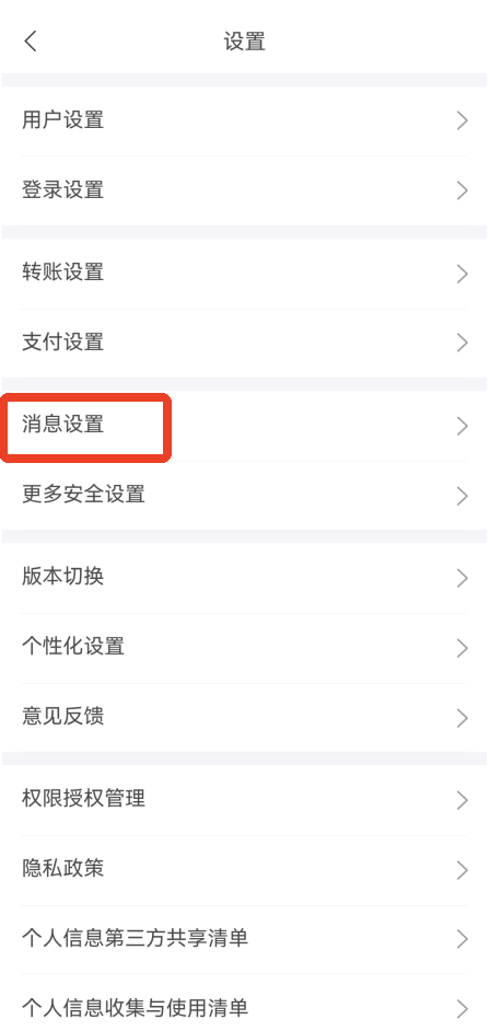 2、接着继续点击消息设置,可以进入开通/关闭各种消息提醒。
