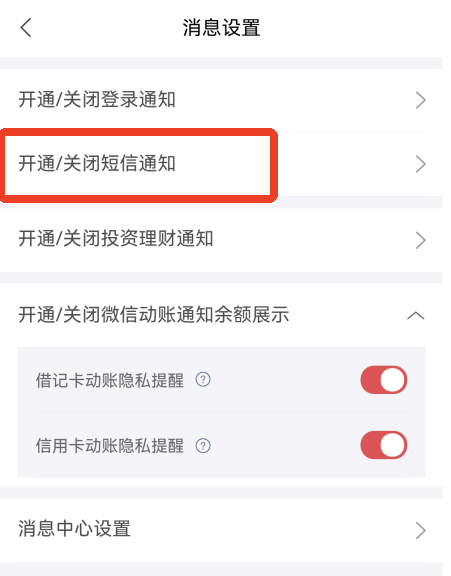 3、选择第二行的开通/关闭短信通知,进入后跟着提示关闭即可。