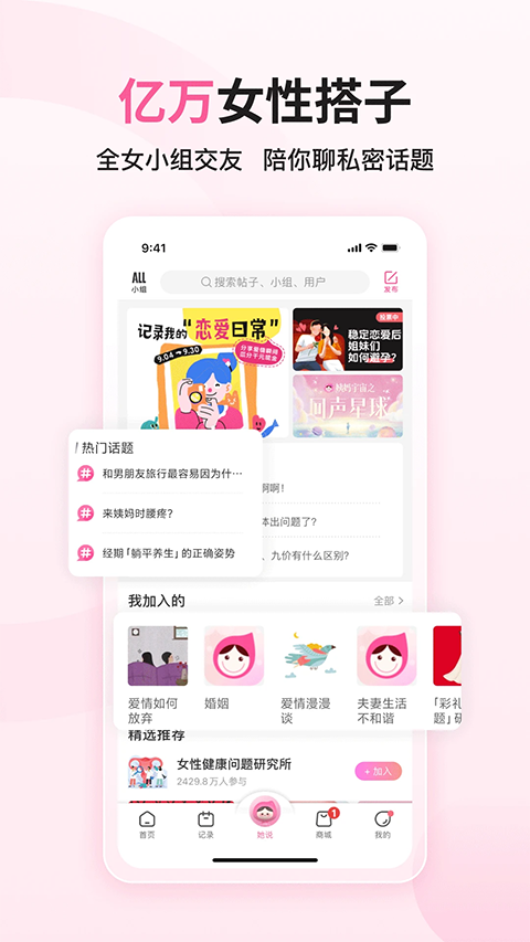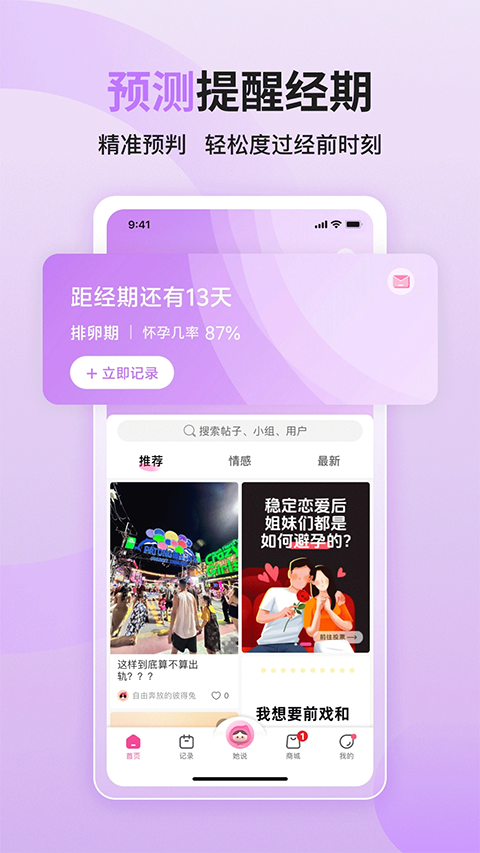 1、【产后那些事】生完宝宝怎么恢复自己?无论身体还是心理,让你迅速恢复“产前”状态,远离产后肥胖臃肿的身材。 2、【闺蜜那些事】为需要关爱的你,打造专属私密空间,好姐妹畅聊心事,给你感同身受的贴心关爱,更多趣闻乐事,欢乐无限。 3、【月经那些事】月经日期记不清?月经期间要忌口?什么牌子的卫生巾很好用?这些我都能告诉你。 4、【备孕那些事】怀孕也有“高峰期”,什么时候备孕几率高,怀孕期间饮食注意,有哪些事儿需要注意更有利于宝宝的孕育,全程科学备孕让你更安心。更新日志