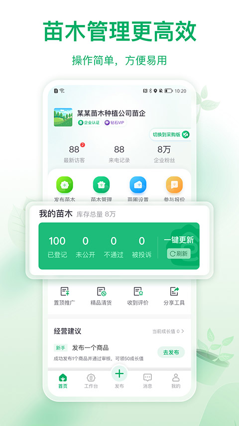 1、苗木管理 完善的管理系统,可同时管理一或多个苗圃,库存同步管理,盘点清晰明了。 2、苗木求购 实现足不出户货比多家,上传苗木求购清单,快速、高效、精准匹配苗木资源。 3、苗木报价 一对一苗木报价,避免恶性竞争,保障供需双方利益,达到公平交易。 4、协同管理 授权员工子账号实现协同管理,全员打理苗场更省心。 5、苗友社区 苗友圈动态全国用户实时同步,提高产品曝光,打造苗木人脉圈。苗仓App怎么添加收货地址