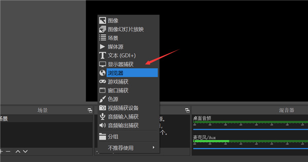 4、打开OBS,增加浏览器源