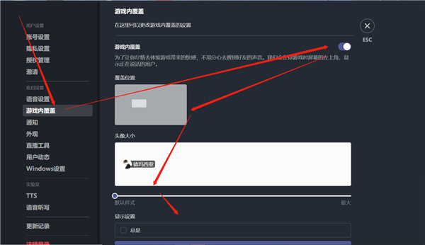 如何关闭&调节「游戏内覆盖」效果: