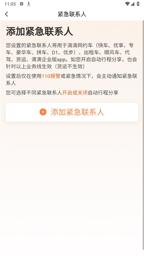 1、滴滴出租车:一键叫车,上门接驾,告别路边拦车和风中等待,颠覆传统的打车方式; 2、滴滴专车:滴滴平台为用户提供优质的出行选择,满足用户品质出行需求; 3、滴滴快车:滴滴平台采用高效的匹配策略,为乘客提供经济快速的出行服务; 4、滴滴单车平台:短距离便利出行,告别拥堵,低碳环保,尽在滴滴单车平台; 5、滴滴自驾租车:租车预订、支付等环节均可在线完成,为您提供全程线上化租车服务; 6、滴滴公交:为用户提供多样化出行方案,公交信息实时查询、公交出行线路定制化服务; 7、滴滴代驾:提供商务代驾、上下班代驾等定制化服务,满足用户多元化需求,让车主更自由的享受有车生活; 8、滴滴豪华车:豪华车型、个性化场景,让您尊享五星出行服务; 9、滴滴小巴:短途接驳首选、智能计价、合理路径规划,小巴帮您用高性价比的价格解决短途出行问题; 10、滴滴企业级:告别贴票报销,简化财务流程,企业用车管理新体验!滴滴老年版app怎么添加紧急联系人