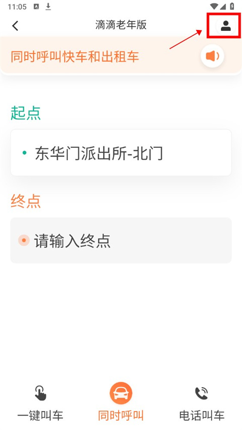 1、下载进入滴滴老年版app,点击右上角的个人中心;