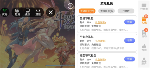 4、账号会自动登录APP的,并在右下角有一个弹窗,里面有礼包以及代金卷可领取;