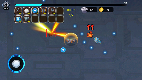 3、游戏中飞船会自动进行攻击,击败怪物会掉落经验;