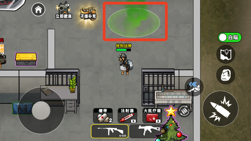 3、找到这个绿色的圈圈,这是撤离点。要注意,撤离点附近会与很多敌人,建议先把敌人击败再撤离。