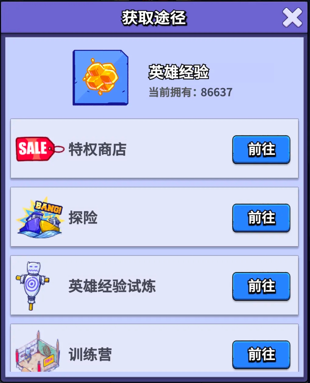 1、英雄升级 英雄升级只消耗英雄经验,英雄等级上限是玩家当前等级的五倍,等级越高消耗的经验越多,战力提升也越高,战力提升的数值与英雄练度正相关。 英雄经验获取途径 ① 玩家14级将解锁试炼关卡“英雄经验副本”; ② 闯关与挂机奖励都会有英雄经验产出; ③ 联盟礼包会给少量英雄经验; ④ 世界的情报玩法中也会有英雄经验产出 ⑤ 训练营挂机产出英雄经验。