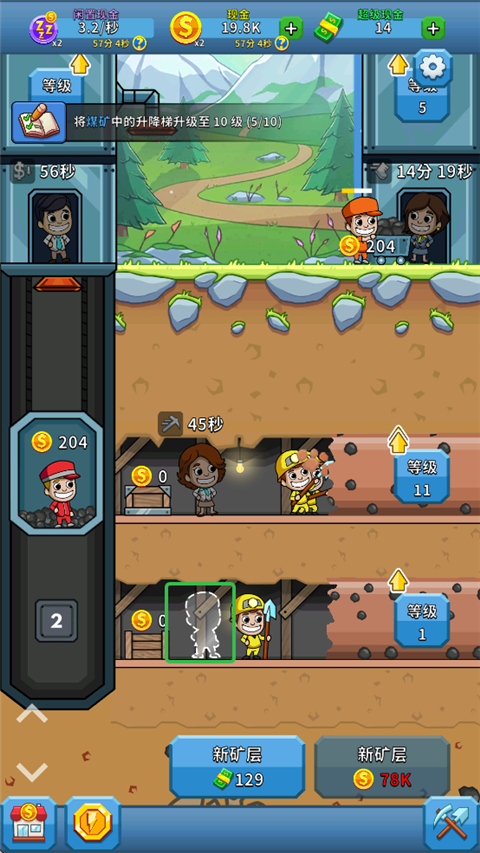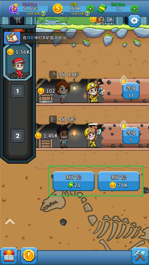 6、最后有新矿层可以开时,重复上述步骤,赚钱速度秒升。