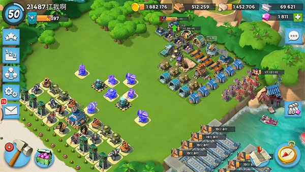 1、【神秘的热带群岛】 绿色的森林小岛,逼真的海洋世界,3D俯瞰式的游戏画面让你似乎身临其境。随风而动的树木光影交错、不断流动的瀑布、天空飞翔的海鸥、有浅变深的海水不停的冲打着沙滩,这些画面细节的处理已经让这款游戏大胜一筹了。卡通风格的海岛画面和人物造型带给玩家几分的小清新,同时也更加符合多个年龄段玩家的口味。 2、【手指上的战场】 玩家在海岛上建造自己的民房、兵营、炮塔、采石场、木材场等建筑设施,并为这些设施装备机枪、大炮、火箭发射器等武器装备,足以让玩家正真的创造属于自己的海岛世界。训练士兵、建造舰艇发动战争让大家时刻体验惊险刺激的战争世界。玩家在游戏中需要由浅入深,由简单到复杂,逐步建立起自己的强大部队,还要精心策划排兵布阵,才能取得一场接一场海岛争夺战的胜利。 3、【攻打神秘BOSS】 在你美丽的岛屿王国的另一端,还有一些邪恶的黑暗卫队在扰乱部落的生活,指挥我们的军队,打败这些入侵者,BOSS哈曼莫的司令部分散在地图的各个角落,击败他们能获得十分丰厚的资源、水晶、勋章奖励。 4、【资源抢夺战】 从沙滩指定范围内登陆。然后在海面上有战舰提供导弹、医疗支援,同时还能释放引导弹进行实时打击目标指挥。至于坐着登陆艇成功冲上岸的士兵,全自动战斗,会优先攻击最近的建筑,这时就需要你引导他们集中火力,打掉敌方防御工事先。最后,只要摧毁敌人的司令部就能引爆敌人整个基地,获得胜利,拿到战利品。海岛奇兵4399版攻略