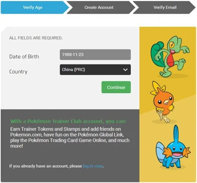 2、在跳转页面填上生日和地区,点绿色“continue”;到达资料页面,开始填你的用户名、密码、注册邮箱和社区名称,该打勾的打勾,最后确认;