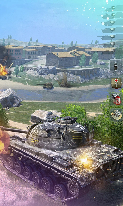 1、游戏收录了五国的经典坦克 这款游戏继承了《坦克世界》的优良血统,同样采用了Bigworld物理引擎开发。在该引擎的支撑下,呈现出媲美端游的优秀视觉效果,美国T34、苏联IS-4、德国虎式、英国征服者,这些根据真实蓝图制作的二战战车着实令我好感倍增,不管是战车模型、伤害数据,还是物理特性,都贴近20世纪中期的史诗大战。