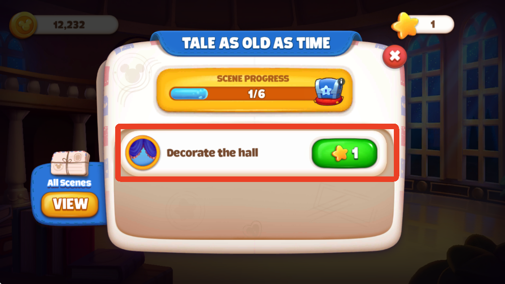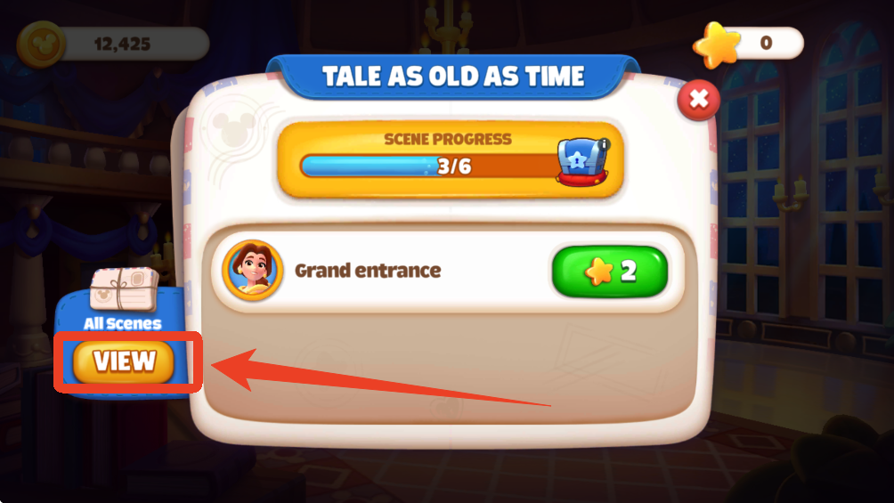 4、点击任务栏左边的【VIEW】可以查看全部的场景,当我们完成了所有任务装饰完这个场景后,就能解锁下一个场景。