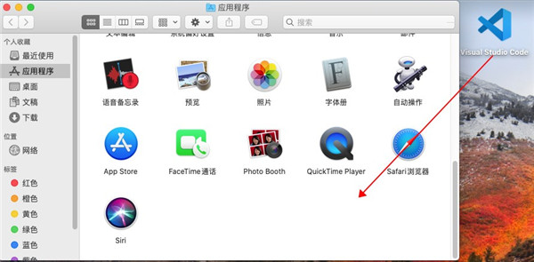 安装方法是解压软件,然后将解压后的VS Code拖放至应用程序中即可