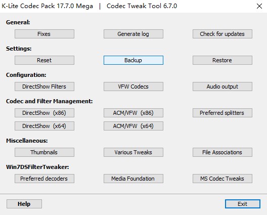 K-Lite Codec Pack 不会扩展专业视频编辑器(例如 Adobe Premiere 或 Vegas Movie Studio)的导入功能。这些应用程序通常仅支持导入一小组文件格式,并且不支持使用编解码器包 (DirectShow/VFW) 中包含的编解码器类型。现代编辑器通常仅使用自己的内部编解码器或仅支持媒体基础类型的外部编解码器。更新日志
