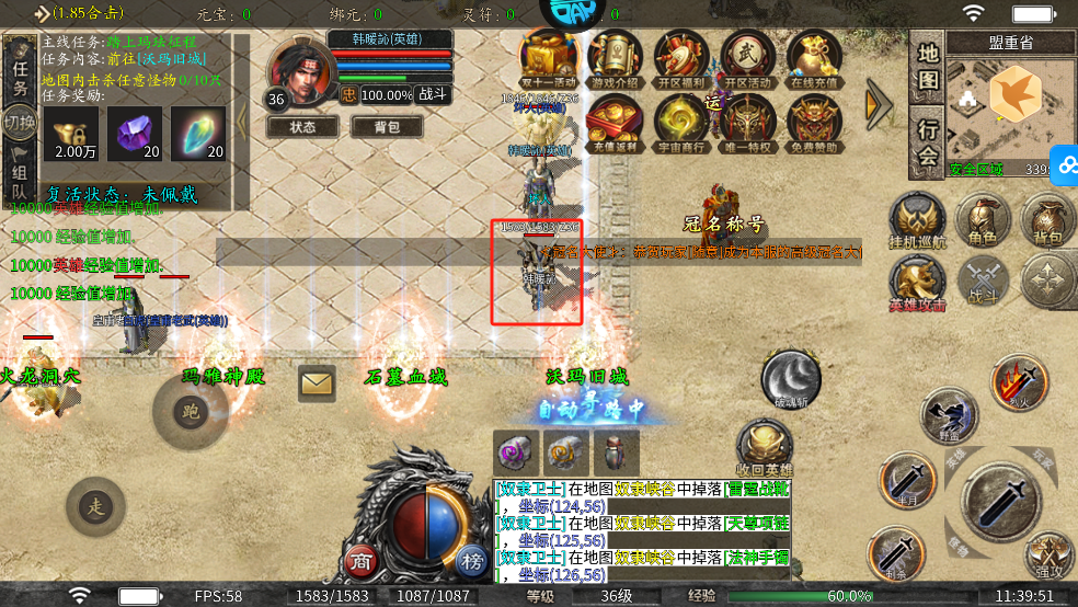 进入游戏后,玩家可以获得一个极品人物,帮助玩家征战沙城,游戏人物会自己击败怪物,不断升级,增加战斗力。
