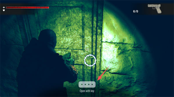 6、返回大厅,打开一开始的大门,同样,点击屏幕下方的“标识”,使用钥匙开启房门。
