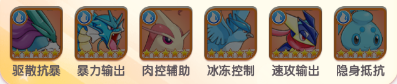 3、水君+暴鲤龙+美纳斯+急冻鸟+甲贺忍蛙+霏欧纳