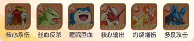 4、炎帝+班基拉斯+卡比兽+火焰鸡+火焰鸟+路卡利欧