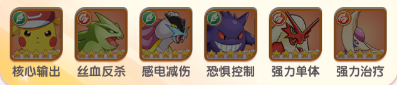 1、小智版皮卡丘+班基拉斯+雷公+耿鬼+火焰鸡+克雷色利亚