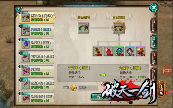 破天一剑手游中,装备合成系统最大限度的还原破天端游经典,顶级装备唾手可得。