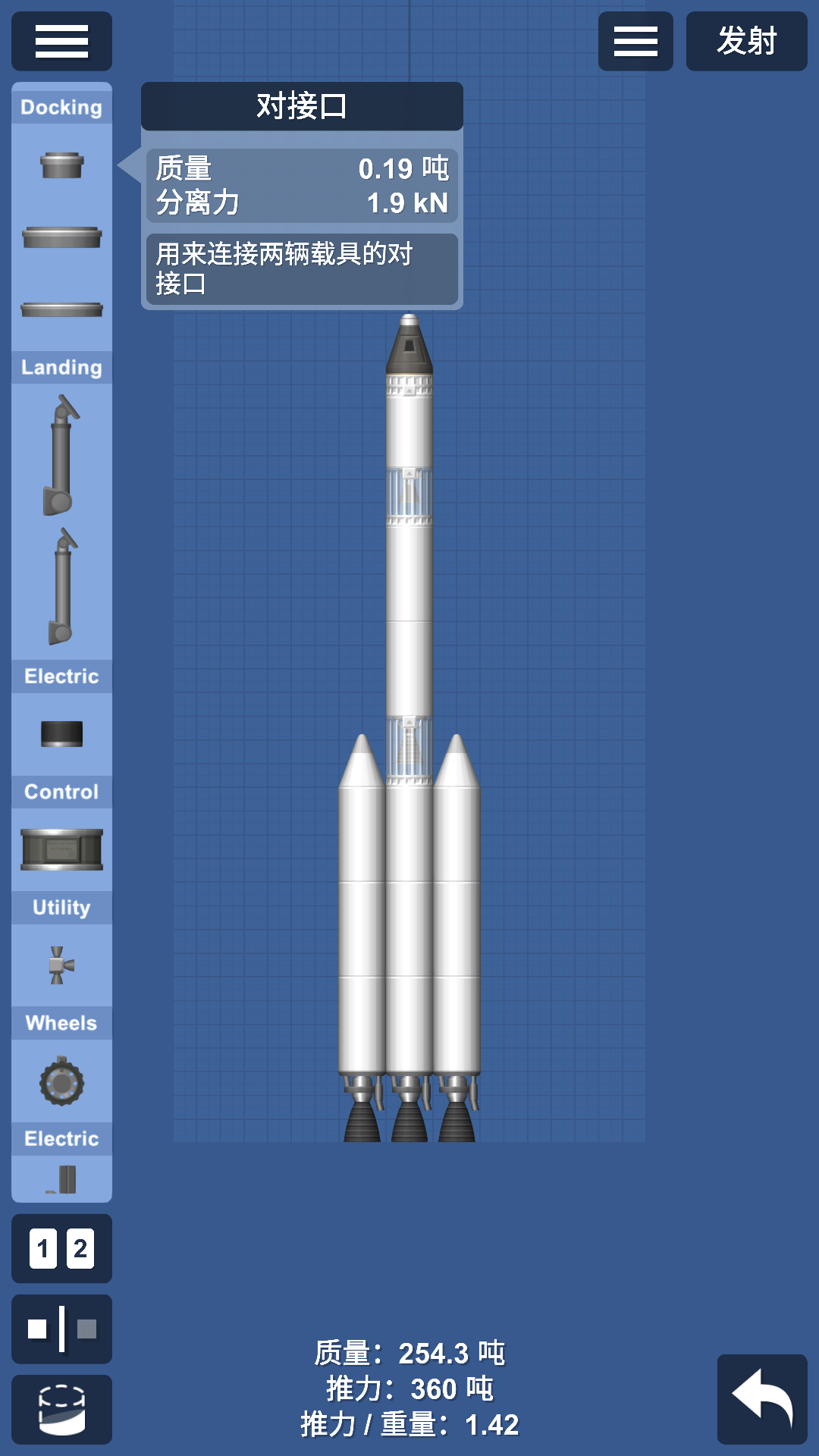 1、首先利用各种零件设计建造我们的火箭,如图所示;