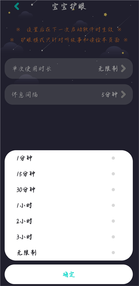2、家长可以设置单次使用时间以及每次的休息间隔。设置后将在下一次生效。