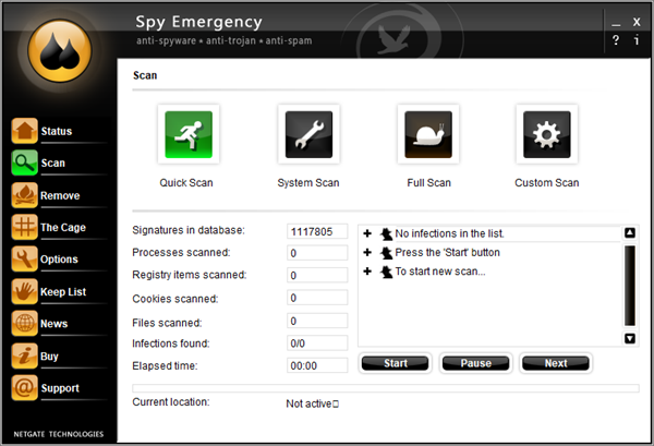 Spy Emergency是一款非常优秀出色的反间谍木马查杀工具应用,软件虽然精致小巧但功能强大,使用便捷,凭借着其专业的快速扫描清除间谍技术,不仅有着快速扫描、系统扫描、全面扫描和自定义扫描以及各种反间谍、反木马和反垃圾邮件等多种功能模式于一身,致力于为用户提供一个安全有效的实时自动化保护系统,能够一键清除所有间谍软件和病毒,从而全方位的保护您的电脑安全。除此之外,在Spy Emergency中内置了全面的数据库资源、包含十万个特征码,独创的多轮检测技术、以及丰富主题背景、数十种语言设置等,带给你最优质的使用服务体验。有需要的朋友欢迎下载体验哦!