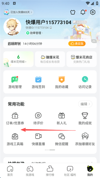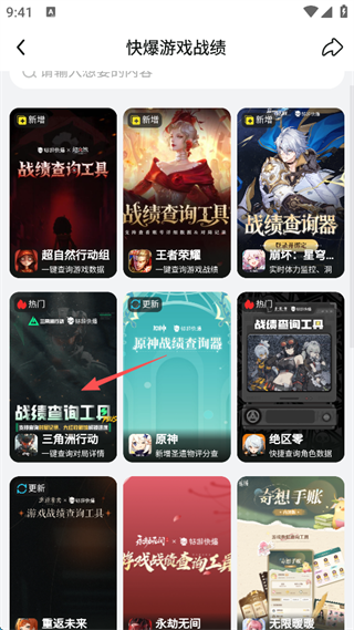 3、点击“快爆游戏战绩”。