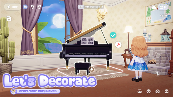 1、前往中心小镇购买需要的家具和衣服,家具店和服装店每日都会刷新。家具店最多可以解锁四个样板间和五个单独的家具展台,样板间每周六刷新。