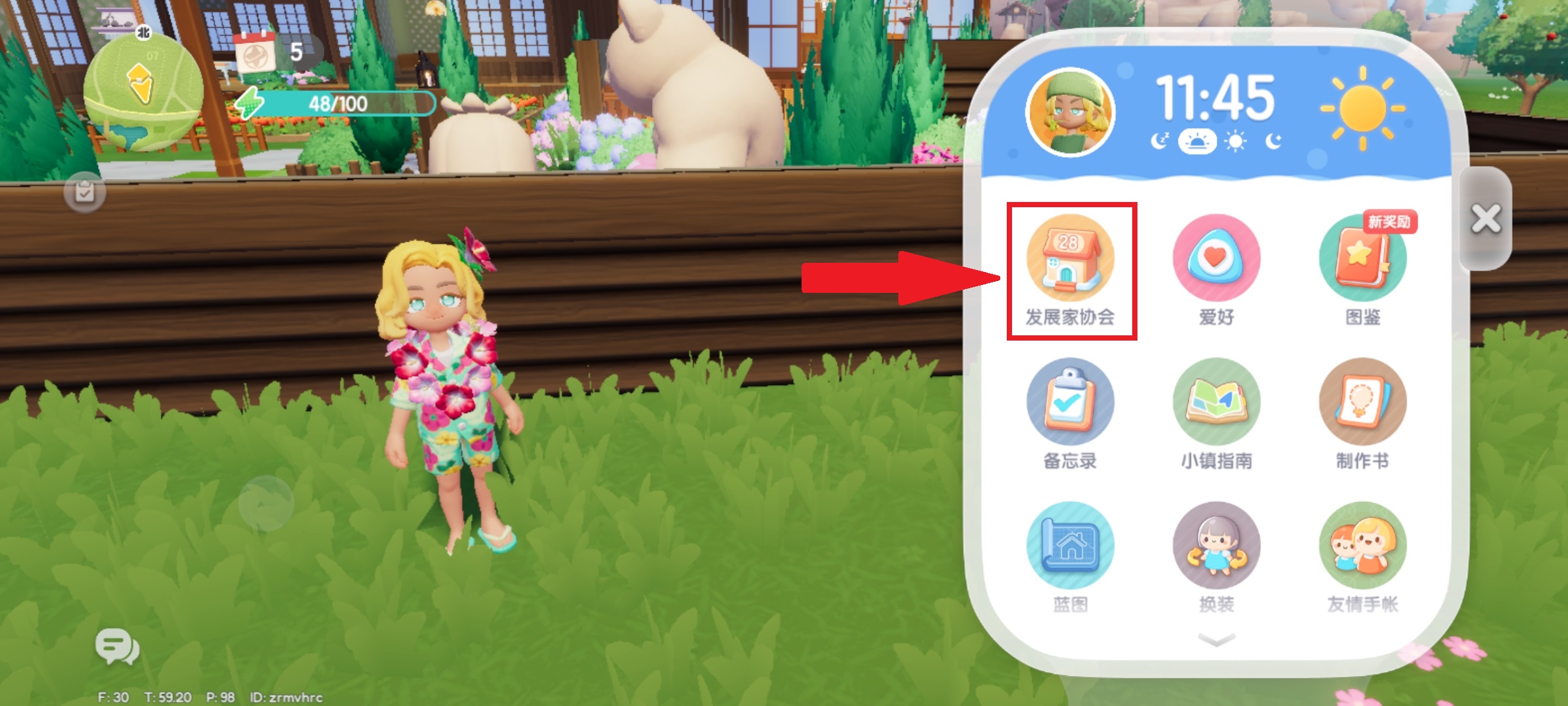 点击右上方的手机进入到发展家协会,可以提升等级,每升一级可以解锁不同的功能,包括仓库容量提升、解锁更多的家具和服装、提升工具的耐久度和解锁地块等。