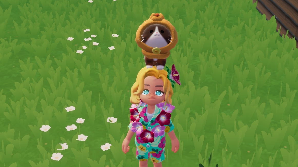 5、当猫咪爱好等级到达5级时,靠近猫咪点击第四个选项,猫咪可以跳到自己脑袋上。