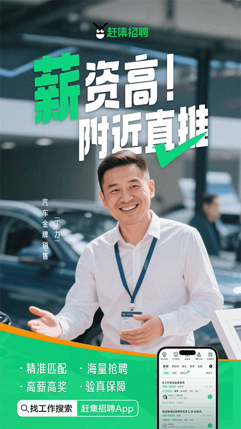1、聊天找工作 像微信一样,与主管在线聊天,直接招,入职快。 2、找附近工作 轻松找到离家近的高薪职位,提升你的生活质量。 3、看企业直播 观看企业直播招聘,工作环境、福利待遇提前了解,躺着找到满意工作。 4、同城老乡会 相亲、交友、找老乡,工作生活两不误。 5、福利更全面 包吃包住包底薪……这些福利还没入职你就知道!赶集招聘app怎么切换求职状态