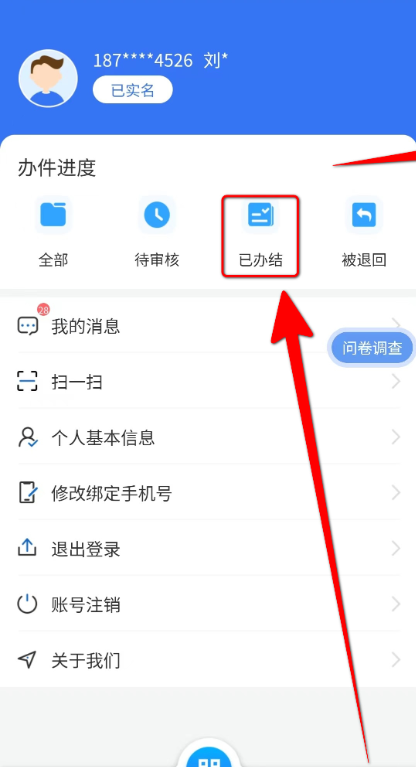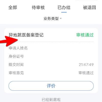 4、点击【我的】进入个人中心;点击【已办结】,查看异地就医备案登记信息。
