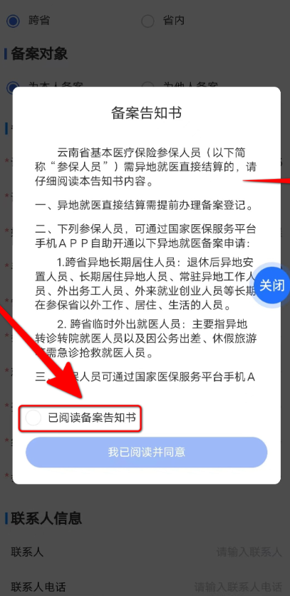 2、阅读备案告知书并勾选【我已阅读并同意】;