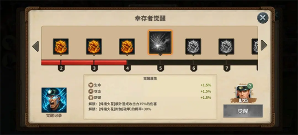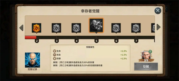 补充一点,幸存者主界面技能升级至三级需要满足三星要求。