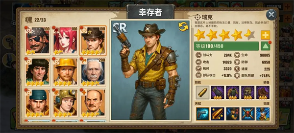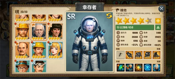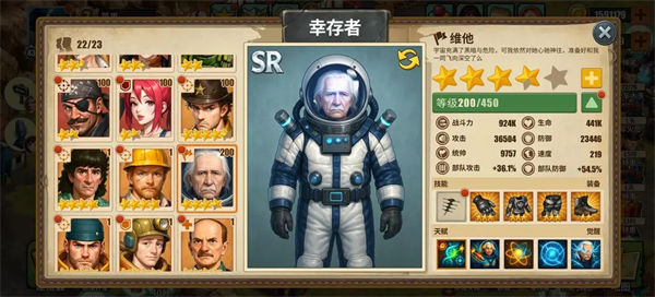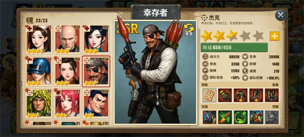 幸存者分为盾\攻\控制\治疗4个体系,优先选择一个主输出和主盾,作为阵容的核心。