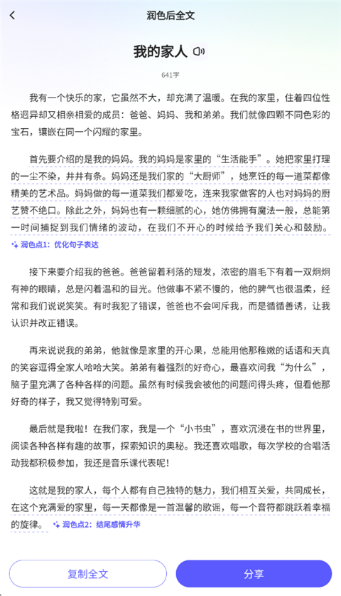 4、点击润色可优化作文内容并进行复制下载!