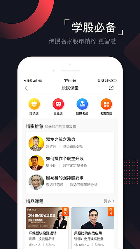 1、财圈动态 阅牛人财圈,3分钟积累一年投资经验; 2、财俊云集 听财俊授业,解投资路上各种疑惑; 3、300s语音 支持300s语音,文字语音图片混排让分享更精彩; 4、互动直播 股票实盘直播交流,对话牛人0距离; 5、传播分享 实用投资信息,一键与家人分享。软件特点