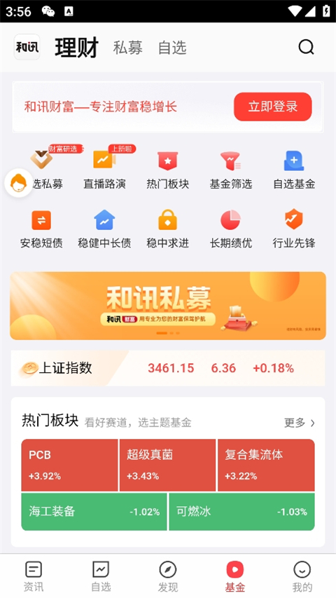 2、在【自选】里可获取自选、沪深、科创板、基金的行情变化;