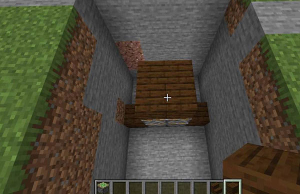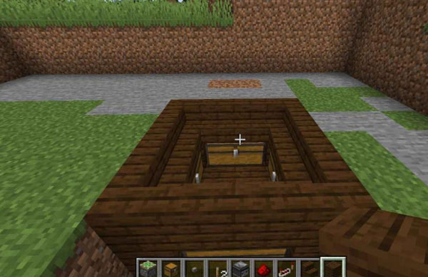 6、最后我们再铺放木板进行隐藏,再摆好1个按钮就做好我们的地板机关啦。