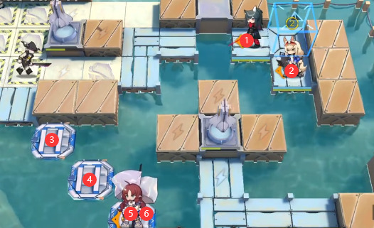 开局如图所示,下常规先锋产费 → 二号奶盾 → 3个垫子 → 桃金娘产费。