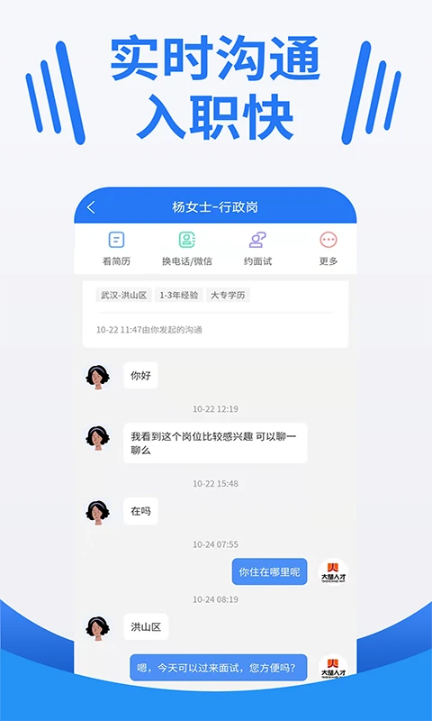1、高效求职 精准的职位推荐、高效的沟通机制、快速的入职。 2、专业招聘 专注武汉人才招聘,每天更新上万个岗位和人才。 3、安全求职 求职者安全设置屏蔽功能,充分保护个人隐私。 4、即时通讯 在线交流和即时互动,像微信一样聊天找工作。 5、精准职位 精准的职位匹配,高薪,最优职位,智能进行匹配。大楚人才网app怎么用