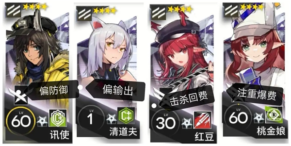 3、讯使:偏向防御,攻击略低,需配合输出干员站场爆费,生存能力比芬强