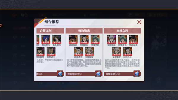 5、如果玩家不知道哪些阵容比较好,在角色界面点击推荐阵容即可查看相应阵容进行搭配;