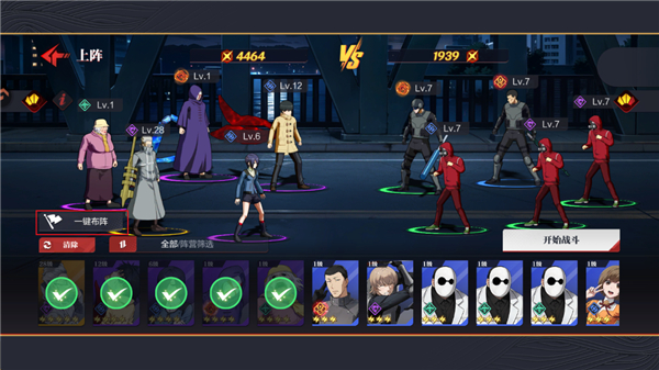 1、玩家进入章节关卡,可选择一键布阵上阵角色;