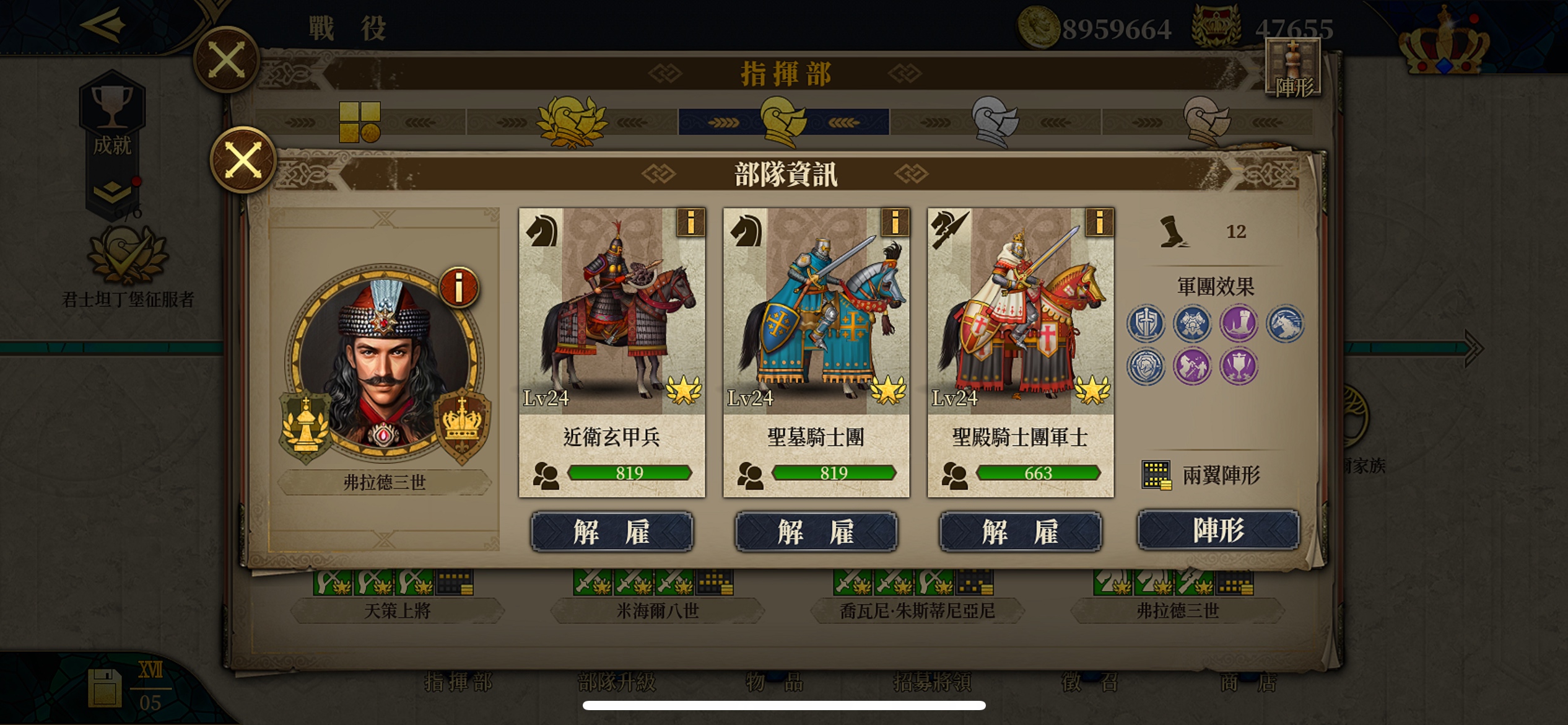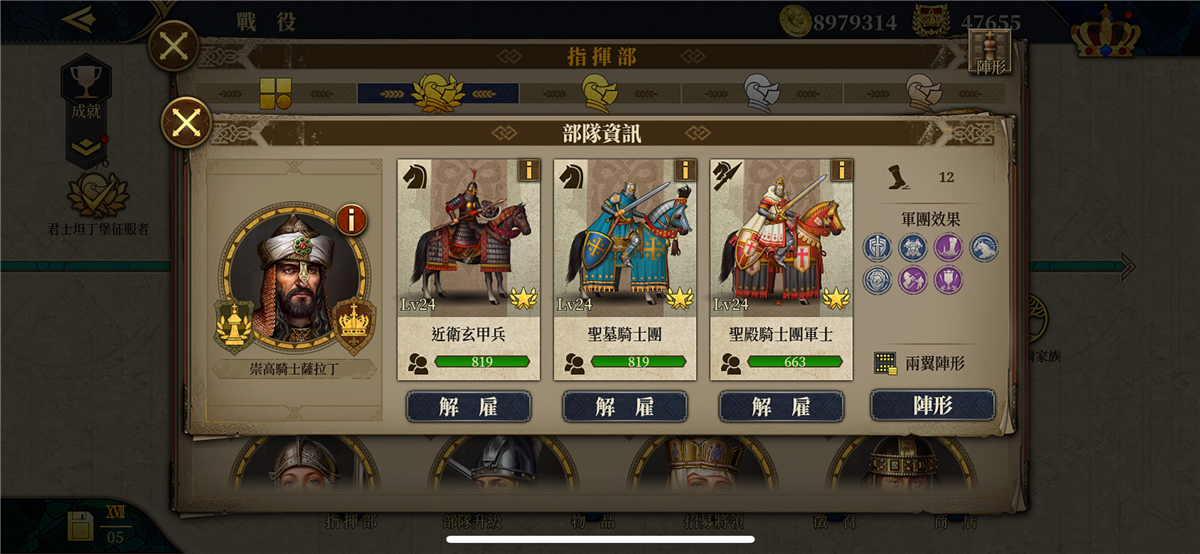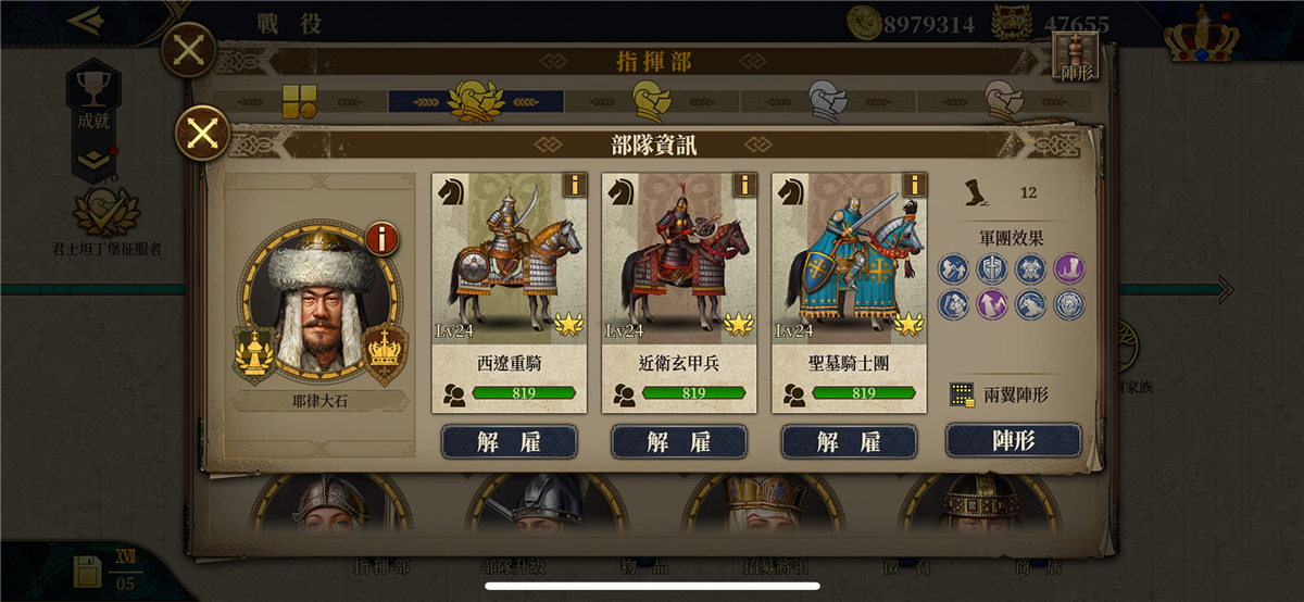 2、如果玩家有狮心王理查一世,则可直接选择培养圣殿骑士团军士而非怯薛。顺带解决红色宝石产出问题。