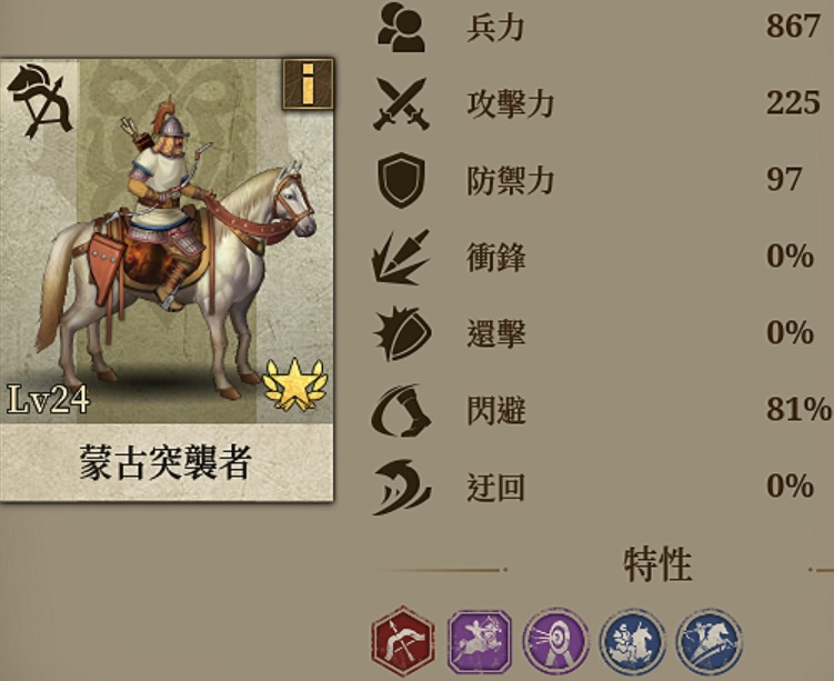 一、弓兵 适合高氪玩家培养。即使弓兵的养成衔接顺滑、低阶兵种战斗力不差并且兵种有很多加伤宝石组。不过零氪玩家能用到的弓兵将领只有帖木儿和速不台。前者由于专属兵种有高额的无视闪避特性,所以在噩梦难度下能发挥其最大价值;后者属于全游唯四的一回合炮台型将领,其功能主要在于战役开局上杂兵来补充伤害。 1、建议着重培养蒙古突袭者和帝国弓骑兵,顺带培养靛蓝突袭者、拉文纳精锐弩兵。 蒙古突袭者拥有攻击减耗以及闪避后增加行动力的高机动性。核心兵种,必养。