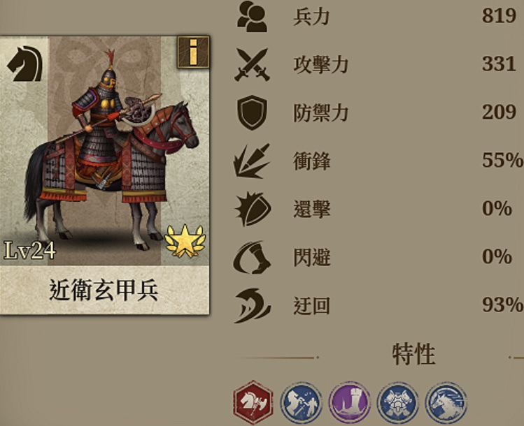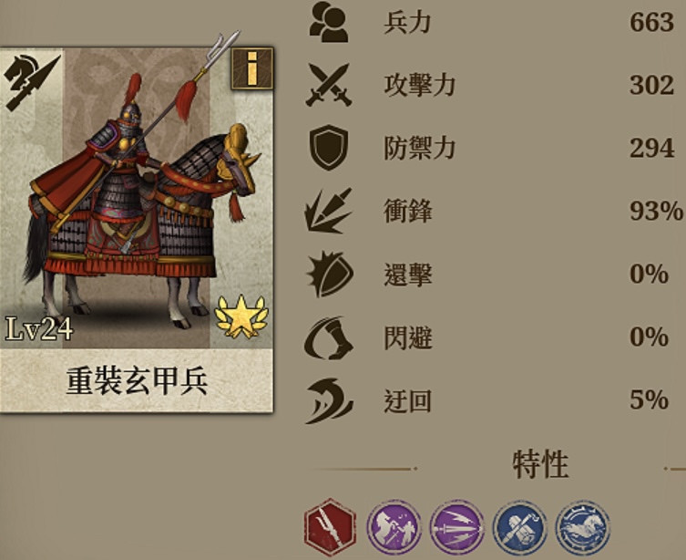 4、重装玄甲兵天赋特性比唐近卫玄甲兵强,但毕竟是冲骑,容易掉编,泛用性没有唐近那么高,所以可以酌情培养。