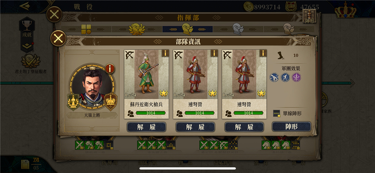 进阶:苏丹近卫火枪兵:连弩营/连弩营。阵型选择单线阵